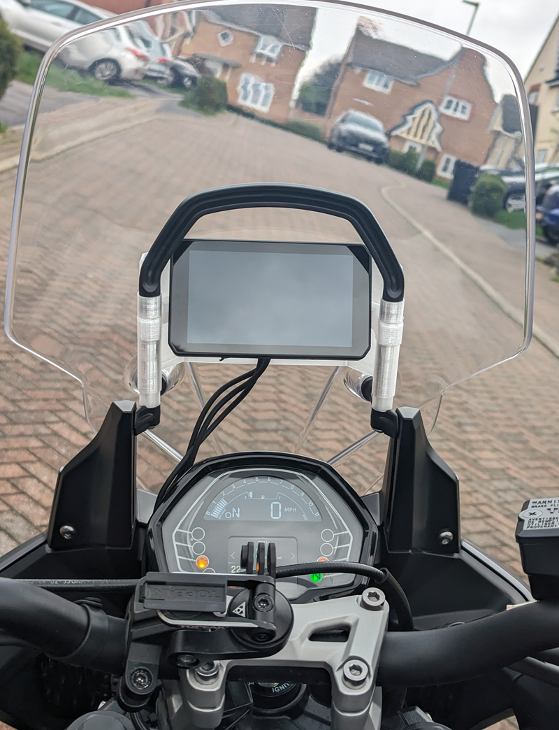 Looking at the mounting options available I noticed the BMW mount just screws in to the vibration damper with the same three screws as the ball mount. I made a custom one myself which utilises the same connection method and the screen lifting handle above the dash, so it can be fitted a neatly as possible on my bike and not look like a phone / tablet stuck on waiting to be stolen.