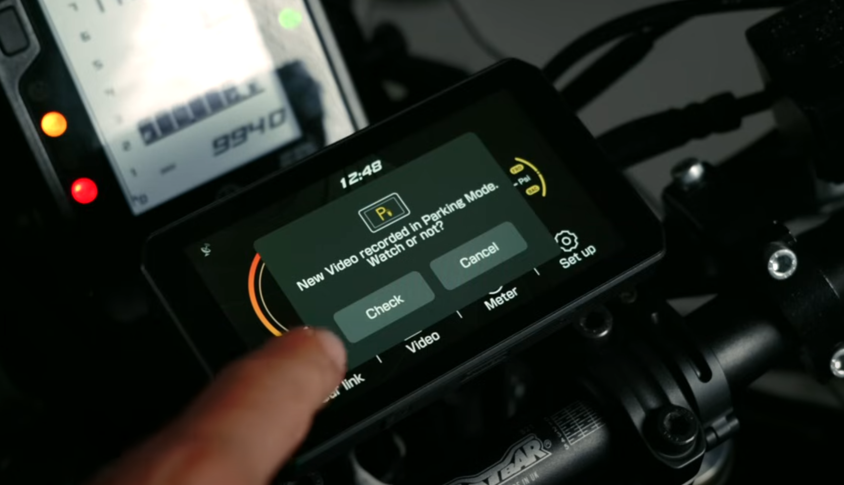 The parking monitor automatically records footage when vibration is detected after turning off your motorcycle's engine.