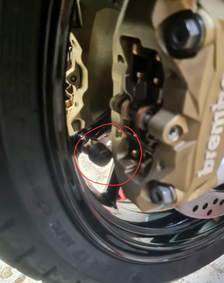 Note: If you have brake calipers similar to the ones shown in picture, please verify the dimensions yourself to consider whether the External Tire Pressure Sensor is compatible with your bike.
